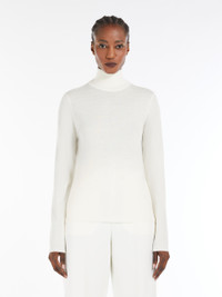 DETAILS Long-sleeved turtleneck jumper made of lightweight and luxurious cashmere and silk yarn. The garment has a regular fit. COMPOSITION AND CARE 100% cashmere. Hand wash cold; do not bleach; do not tumble dry; flat drying in the shade; cool iron; professionally dry clean perchloroethylene - mild process; do not wet clean.; iron with a cloth between.; using neutral detergent. Distributed by Max Mara S.r.l., registered office in Reggio Emilia (Italy), Via Giulia Maramotti 4, 42124 (IT)
