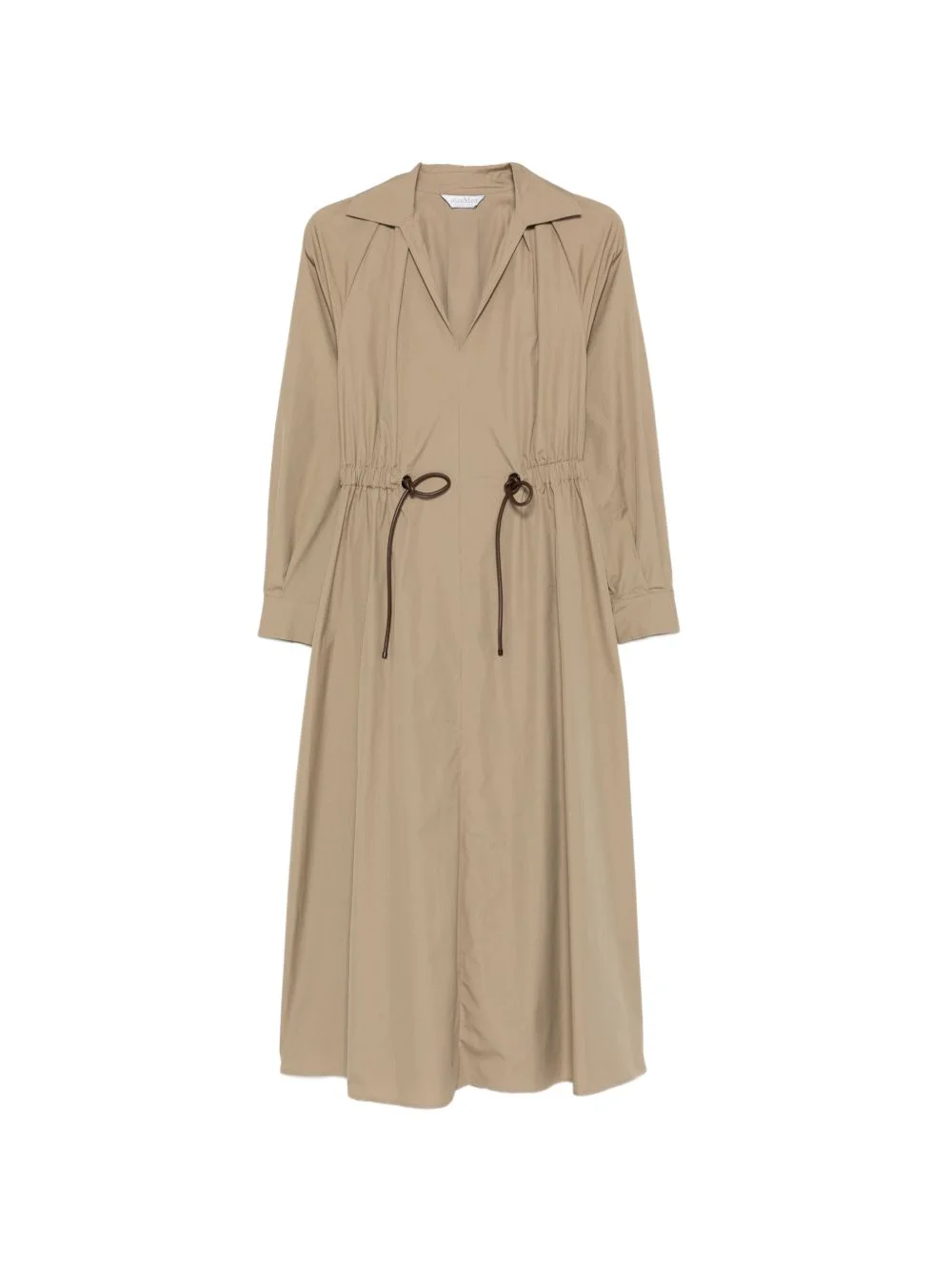 Pedaggi drawstring V-neck midi dress Highlights - Beige - V-neck - Drawstring waist - Long sleeves - Point collar - Cotton Made in Italy Composition Cotton 100% Washing instructions Hand Wash