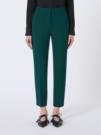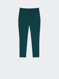 DETAILS Classic Max Mara trouser model featuring a slim fit, mid-rise waist and cropped ankle cut. Trousers in compact viscose jersey fabric Slim fit High-cut waistband with a fly-covered zip and hook-and-bar fastening In-seam side pockets Pressed pleat detail Unlined model COMPOSITION AND CARE 84% viscose, 11% polyamide, 5% elastane. Do not wash; do not bleach; do not tumble dry; cool iron; professionally dry clean perchloroethylene - mild process; do not wet clean.; protect buttons before washing. Distributed by Max Mara S.r.l., registered office in Reggio Emilia (Italy), Via Giulia Maramotti 4, 42124 (IT)