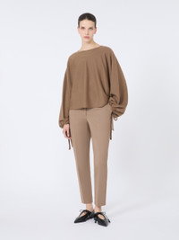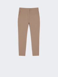 DETAILS Classic Max Mara trouser model featuring a slim fit, mid-rise waist and cropped ankle cut. Trousers in compact viscose jersey fabric Slim fit High-cut waistband with a fly-covered zip and hook-and-bar fastening In-seam side pockets Pressed pleat detail Unlined model COMPOSITION AND CARE 84% viscose, 11% polyamide, 5% elastane. Do not wash; do not bleach; do not tumble dry; cool iron; professionally dry clean perchloroethylene - mild process; do not wet clean.; protect buttons before washing. Distributed by Max Mara S.r.l., registered office in Reggio Emilia (Italy), Via Giulia Maramotti 4, 42124 (IT)
