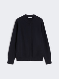 DETAILS Cardigan in a fabric-stitch knit with slightly dropped shoulders. Pure wool yarn cardigan Boxy fit Mandarin collar and long sleeves Front concealed zip fastening Welt pockets on the sides Top metal snap button Stretch ribbed collar, cuffs and hem COMPOSITION AND CARE Knitted fabric 100% virgin wool; hems 90% virgin wool, 9% polyamide, 1% elastane. Hand wash cold (40°c max); do not bleach; do not tumble dry; flat drying in the shade; cool iron; professionally dry clean perchloroethylene - mild process; do not wet clean.; iron with a cloth between.; using neutral detergent. Distributed by Max Mara S.r.l., registered office in Reggio Emilia (Italy), Via Giulia Maramotti 4, 42124 (IT)