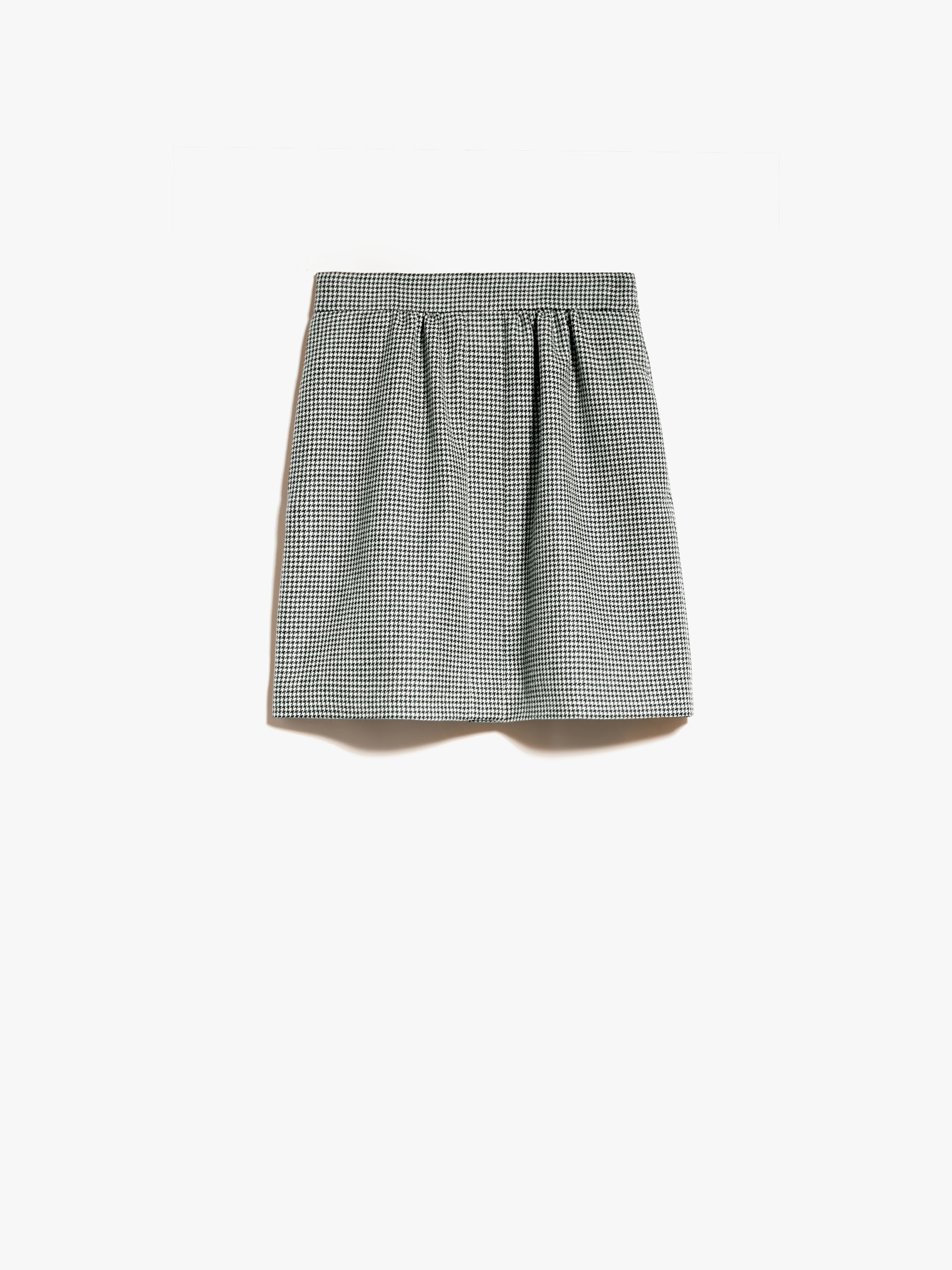 DETAILS Short pencil skirt made of pure wool fabric with designs. The style features a playful gathered motif fitted on the waist and a concealed front fastening. Length: 45 cm COMPOSITION AND CARE Fabric 100% virgin wool; lining 95% acetate, 5% elastane. Do not wash; do not bleach; do not tumble dry; cool iron; professionally dry clean perchloroethylene - mild process; do not wet clean. Distributed by Max Mara S.r.l., registered office in Reggio Emilia (Italy), Via Giulia Maramotti 4, 42124 (IT)