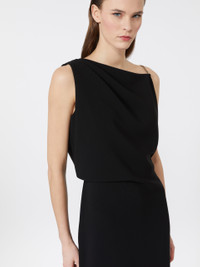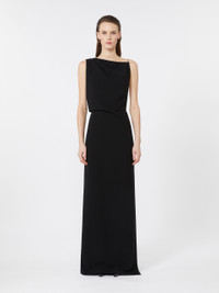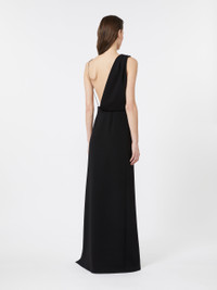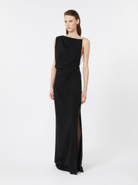 DETAILS Long dress with draped bustier on the right shoulder and asymmetrical cut-out neckline on the back. Heavy cady dress Straight line with side slit Side closure with concealed zip. Removable, replaceable jewel shoulder strap with fabric variant Seam at the waist Partially lined COMPOSITION AND CARE Fabric 70% triacetate, 30% polyester; fabric 2 100% silk. Do not wash; do not bleach; do not tumble dry; cool iron; professionally dry clean perchloroethylene - mild process; do not wet clean.; remove the straps before washing. Distributed by Max Mara S.r.l., registered office in Reggio Emilia (Italy), Via Giulia Maramotti 4, 42124 (IT)