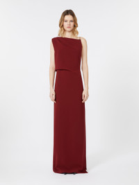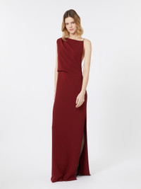 DETAILS Long dress with draped bustier on the right shoulder and asymmetrical cut-out neckline on the back. Heavy cady dress Straight line with side slit Side closure with concealed zip. Removable, replaceable jewel shoulder strap with fabric variant Seam at the waist Partially lined COMPOSITION AND CARE Fabric 70% triacetate, 30% polyester; fabric 2 100% silk. Do not wash; do not bleach; do not tumble dry; cool iron; professionally dry clean perchloroethylene - mild process; do not wet clean.; remove the straps before washing. Distributed by Max Mara S.r.l., registered office in Reggio Emilia (Italy), Via Giulia Maramotti 4, 42124 (IT)