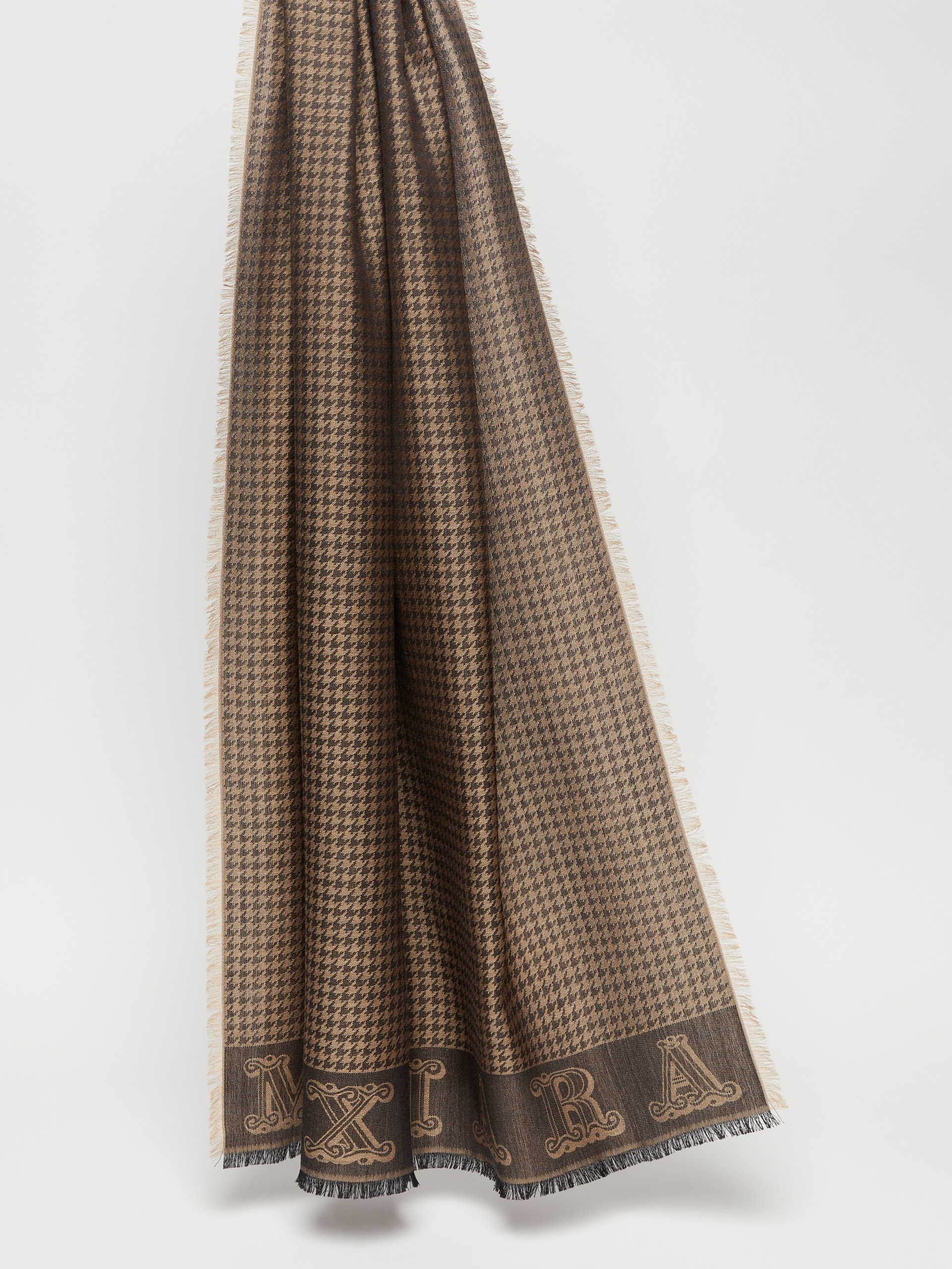 DETAILS Stole in lightweight silk and wool yarn featuring an all-over jacquard-knit houndstooth pattern with MaxMaraGram lettering at the two ends. Complete with fringed trims. Size: 70 x 190 cm. COMPOSITION AND CARE 78% silk, 22% wool. Do not wash; do not bleach; do not tumble dry; cool iron; professionally dry clean perchloroethylene - mild process; do not wet clean. Distributed by Max Mara S.r.l., registered office in Reggio Emilia (Italy), Via Giulia Maramotti 4, 42124 (IT)