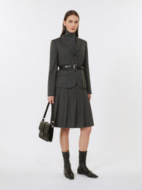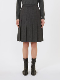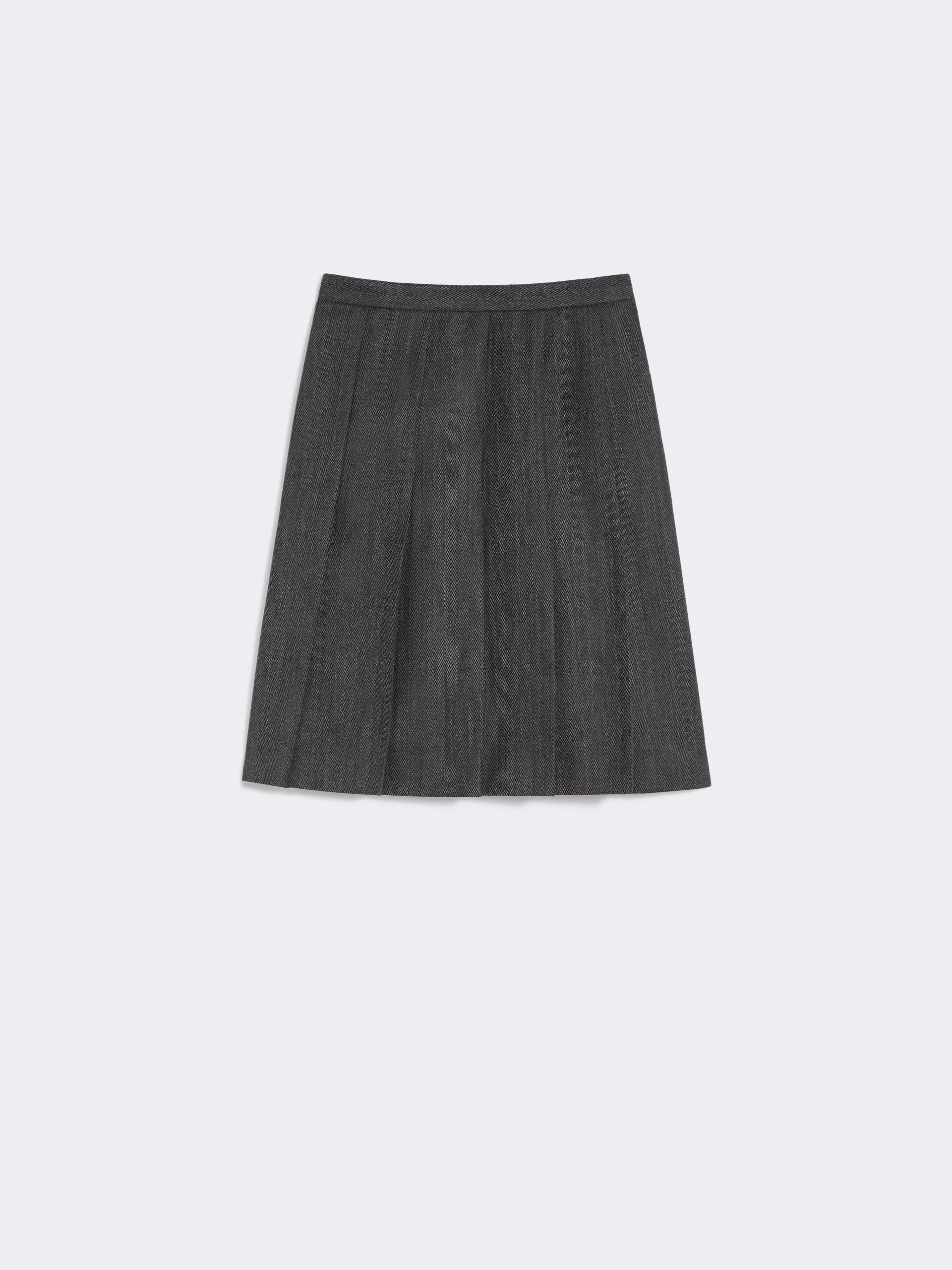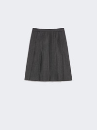 DETAILS Short skirt featuring partially stitched pleats, offering structured movement to the garment. Crafted from flannel, it presents a slightly flared silhouette and minimalist construction. Skirt in stretch wool flannel Semi-fitted cut with slightly flared silhouette Regular waist finished with half-sewn pleat detail Side zip fastening Unlined model COMPOSITION AND CARE 99% virgin wool, 1% elastane. Do not wash; do not bleach; do not tumble dry; cool iron; professionally dry clean perchloroethylene - mild process; do not wet clean.; after washing fix the pleats by ironing them. Distributed by Max Mara S.r.l., registered office in Reggio Emilia (Italy), Via Giulia Maramotti 4, 42124 (IT)