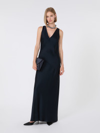 DETAILS Long slip dress with diagonal seams that accentuate the silhouette. Envers satin dress Flowing style Matching front and back V neckline Wide shoulder straps Bias cut Partially lined COMPOSITION AND CARE Fabric 71% acetate, 29% viscose; lining 71% acetate, 29% viscose. Do not wash; do not bleach; do not tumble dry; cool iron; professionally dry clean perchloroethylene - mild process; do not wet clean. Distributed by Max Mara S.r.l., registered office in Reggio Emilia (Italy), Via Giulia Maramotti 4, 42124 (IT)