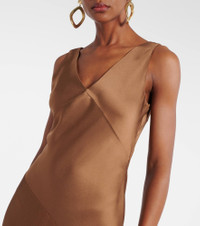 Max Mara's Pilly maxi dress is a glamorous piece for special occasions. A chic, sleek design, this piece features a V-neckline and is made from panels of lustrous satin for an elegant drape. Product Details - Material: 71% acetate, 29% viscose - Care instructions: dry clean - Made in China - Designer color name: Visone - Item color: brown - Lining: 71% acetate, 29% viscose - Collar: V-neck - Item number: P01077389 Size & Fit - True to size - Cinched waist - Non-stretchy fabric - The model seen in the picture is 178cm-5'10" and wearing a size DE 34