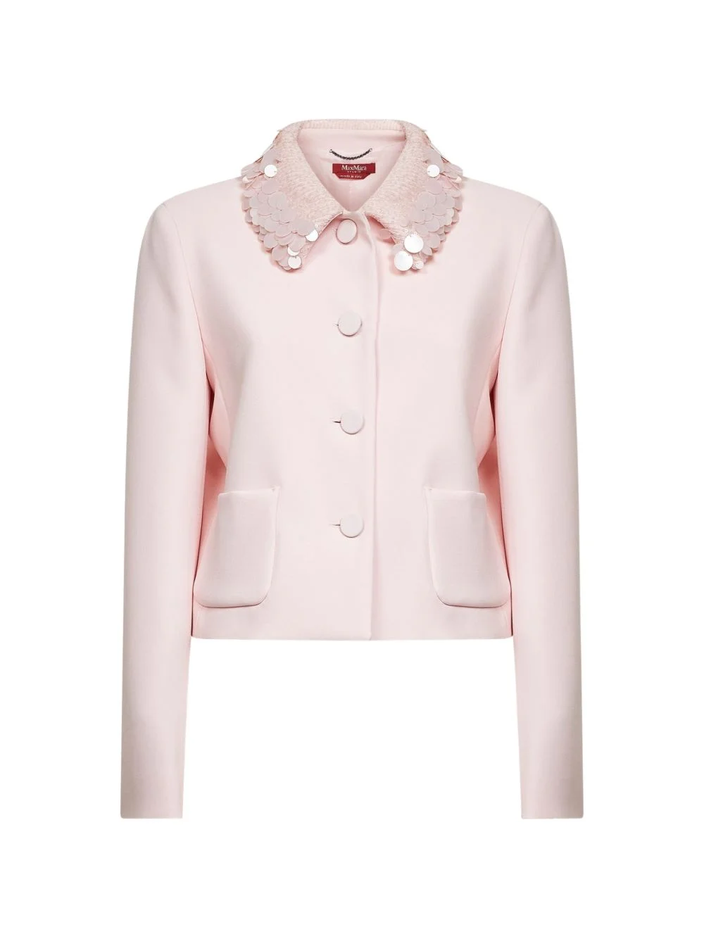 sequin-embellishment blazer Highlights - Light pink - Sequin embellishment - Patch pockets - Long sleeves Made in Italy Composition Acetate 78%, Polyester 22% Washing instructions Read Manufacturer Guidelines