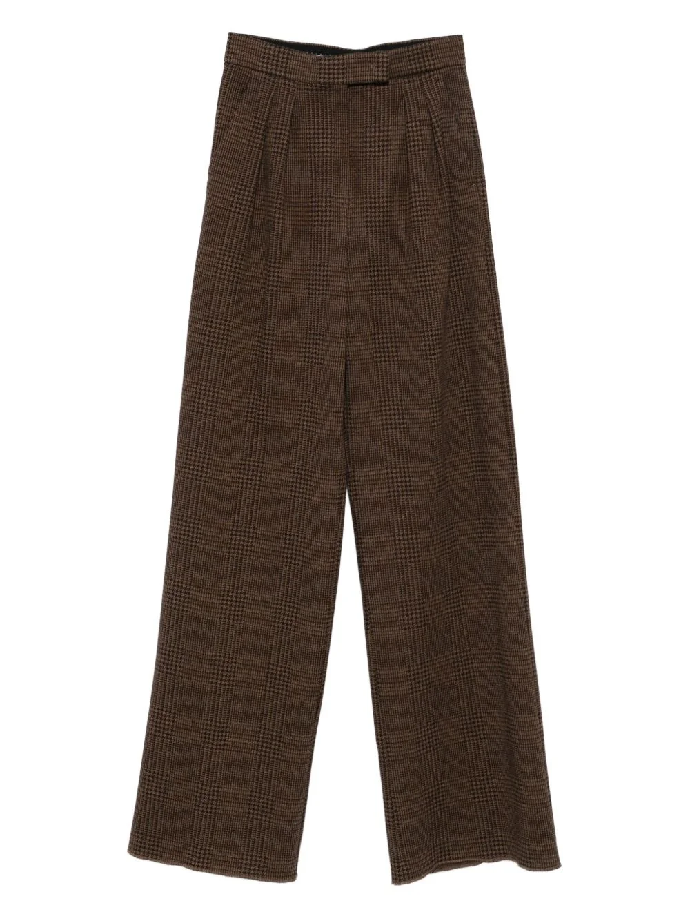 pleated-check trousers Highlights - Brown - Check pattern - Pleated front Imported Composition Cotton 53%, Wool 37%, Polyester 10% SIZE & FIT Model measurements Height 5 ft 11 in(1.8 m) Bust/Chest 31.49 in(80 cm) Hips 36.61 in(93 cm) Waist 24.4 in(62 cm) Washing instructions Dry Clean Only