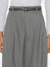 pleated-front belted trousers Highlights - Grey - Pleated front - Belt embellishment - Front pockets - Wool fabric Made in Italy Composition Virgin Wool 97%, Elastane 3% SIZE & FIT Model measurements Height 5 ft 10 in(1.77 m) Bust/Chest 33.07 in(84 cm) Hips 37 in(94 cm) Waist 24.8 in(63 cm) Washing instructions Dry Clean Only