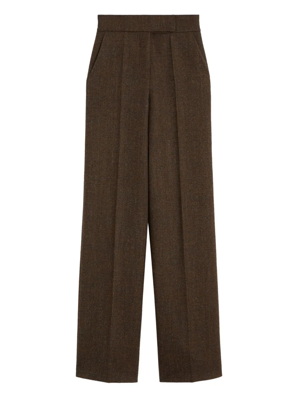 pleated wide-leg trousers Highlights - Brown - Pressed crease front - Wide leg - High waist - Front pockets Imported Composition Virgin Wool 100% Washing instructions Read Manufacturer Guidelines