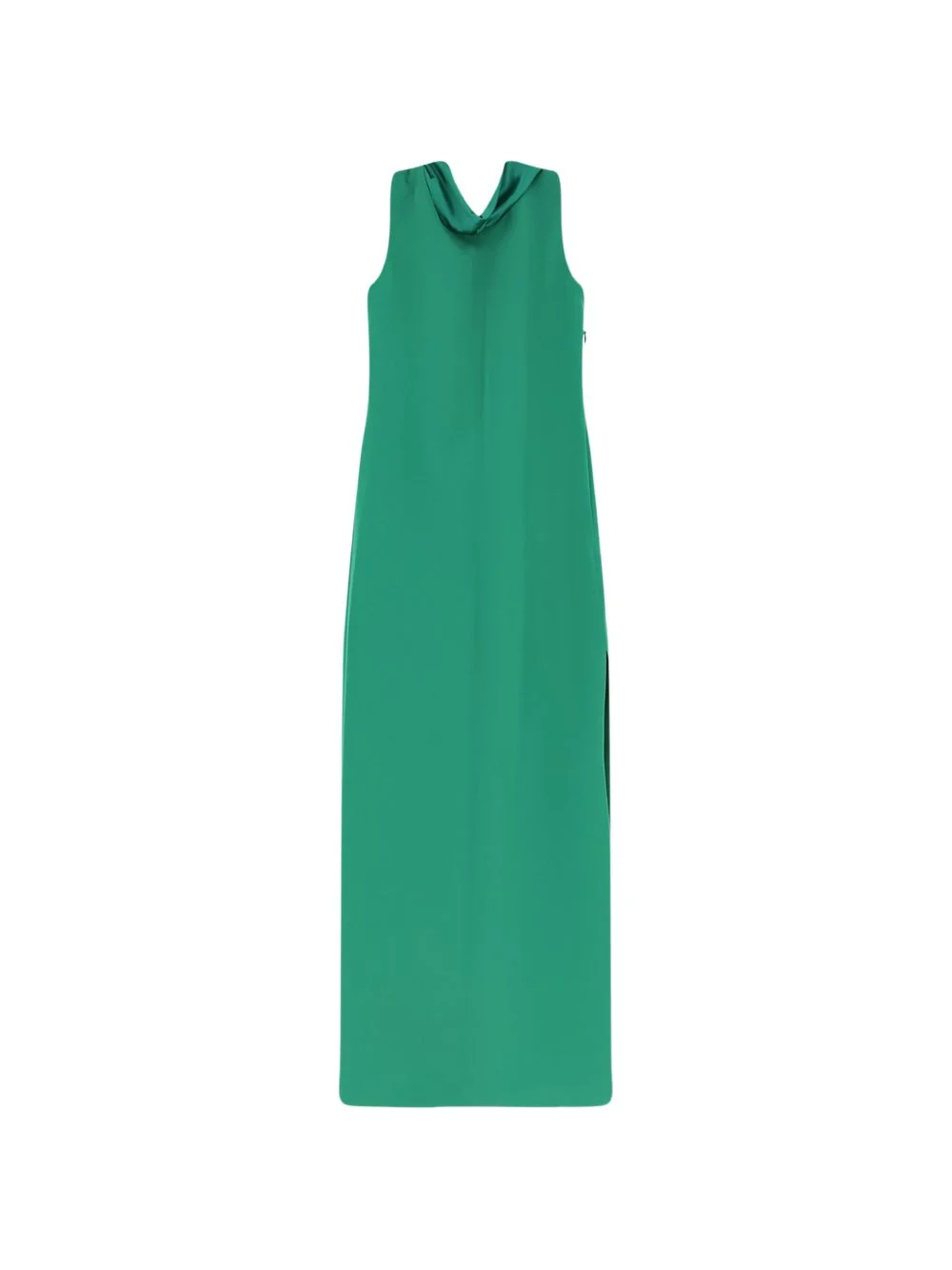 plunging back side-slit dress Highlights - Green - Side zip - Plunging back - Satin trim - Side slit Made in Italy Composition Triacetate 65%, Polyester 35% Washing instructions Read Manufacturer Guidelines