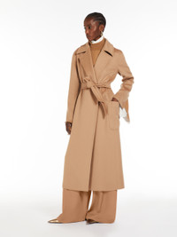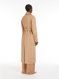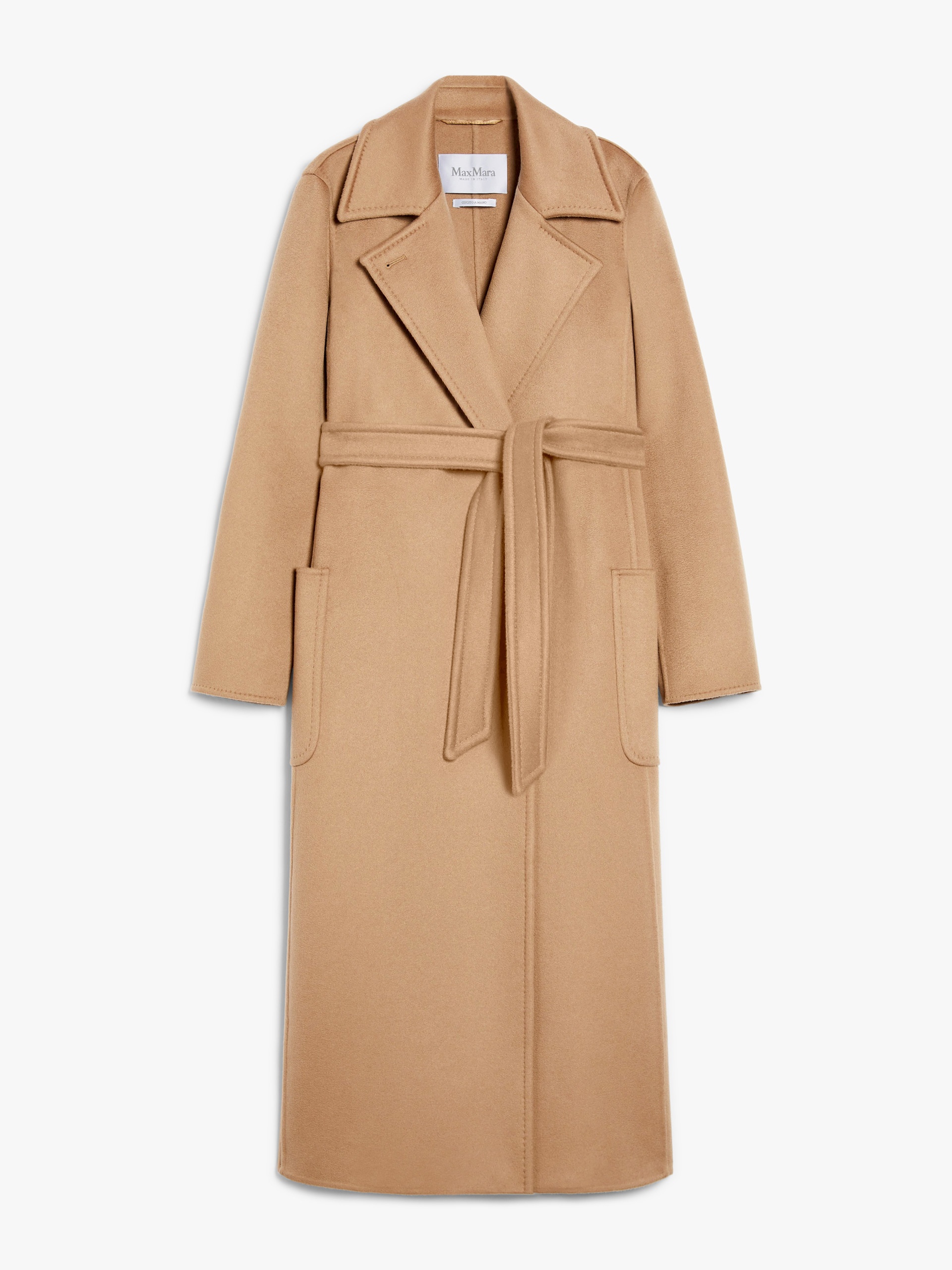 DETAILS Long wrap coat in hand-sewn, luxurious pure cashmere double cloth. The style features a straight silhouette with lapel collar, long set-in sleeves, front patch pockets and a centre-back vent. The wrap closure with a matching belt helps accentuate the waist. COMPOSITION AND CARE Fabric 100% cashmere; - except joining thread. Do not wash; do not bleach; do not tumble dry; cool iron; professionally dry clean perchloroethylene - mild process; do not wet clean.; do not iron the buttons.; protect buttons before washing.; contains non-textile parts of animal origin. Distributed by Max Mara S.r.l., registered office in Reggio Emilia (Italy), Via Giulia Maramotti 4, 42124 (IT)