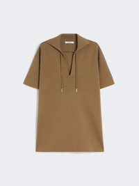 DETAILS Short-sleeved blouse featuring a plain knit on the front and a pleated-effect texture on the back. - The main fabric of this garment contains raw materials derived from wood cellulose, a fibre produced with respect for the forest - Viscose crepe yarn blouse - Straight cut - Open polo collar - Open V-neck with tubular drawstring and metal ends - Side slits COMPOSITION AND CARE 65% viscose, 35% polyamide. Hand wash cold; do not bleach; do not tumble dry; flat drying in the shade; cool iron; professionally dry clean perchloroethylene - mild process; do not wet clean.; iron with a cloth between.; using neutral detergent. Distributed by Max Mara S.r.l., registered office in Reggio Emilia (Italy), Via Giulia Maramotti 4, 42124 (IT)