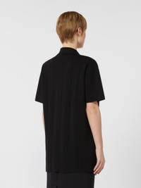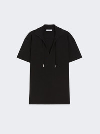 DETAILS Short-sleeved blouse featuring a plain knit on the front and a pleated-effect texture on the back. The main fabric of this garment contains raw materials derived from wood cellulose, a fibre produced with respect for the forest Viscose crepe yarn blouse Straight cut Open polo collar Open V-neck with tubular drawstring and metal ends Side slits COMPOSITION AND CARE 65% viscose, 35% polyamide. Hand wash cold (40°c max); do not bleach; do not tumble dry; flat drying in the shade; cool iron; professionally dry clean perchloroethylene - mild process; do not wet clean.; iron with a cloth between.; using neutral detergent. Distributed by Max Mara S.r.l., registered office in Reggio Emilia (Italy), Via Giulia Maramotti 4, 42124 (IT)