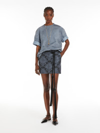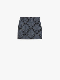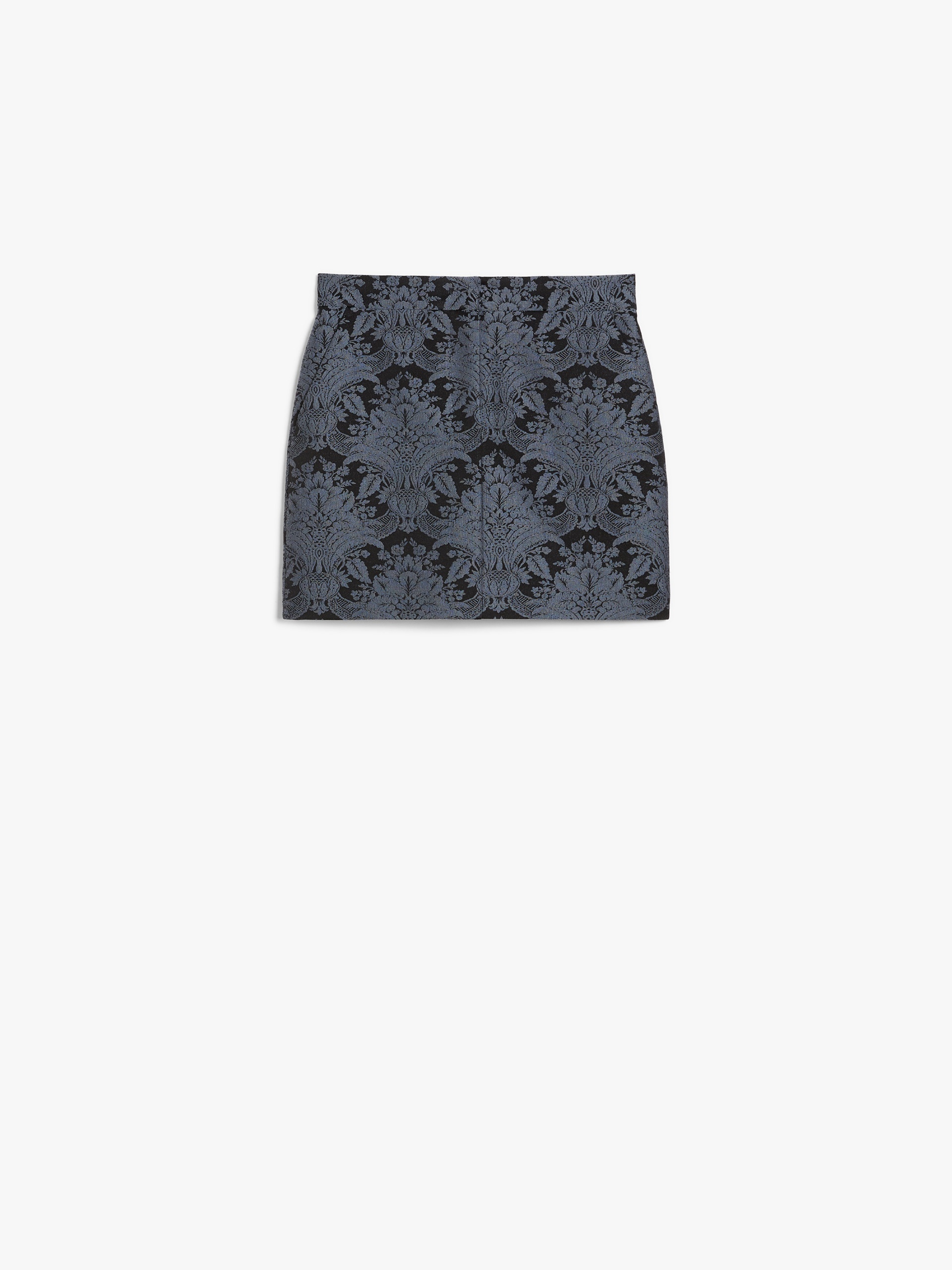 DETAILS Straight miniskirt, made of luxurious tech wool with an all-over jacquard brocade pattern. Lined and with slant pockets on the sides and welt pockets on the back. Fastening with a wide waistband tab, zip fly and small hook. COMPOSITION AND CARE Fabric 68% virgin wool, 32% polyamide; lining 95% acetate, 5% elastane. Do not wash; do not bleach; do not tumble dry; cool iron; professionally dry clean perchloroethylene - mild process; do not wet clean.; protect buttons before washing. Distributed by Max Mara S.r.l., registered office in Reggio Emilia (Italy), Via Giulia Maramotti 4, 42124 (IT)