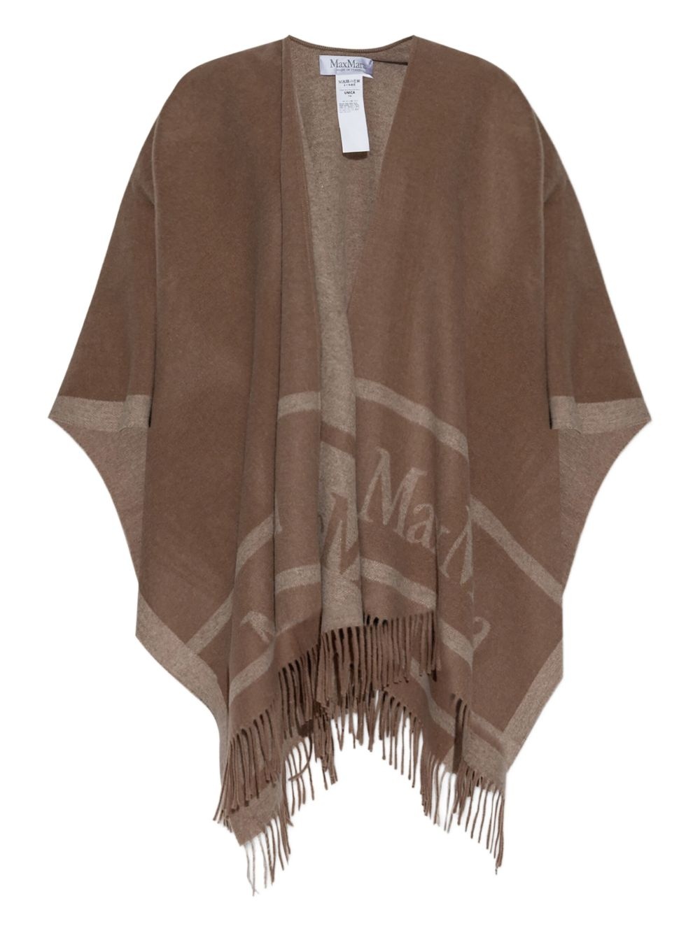 fringed shawl poncho Highlights - Brown - Logo design - Open front - Tonal border - Fringed hem Made in Italy SIZE & FIT Measurement BUST 32.67 in(83 cm) HIPS 35.03 in(89 cm) LENGTH 69.68 in(177 cm) WAIST 24.01 in(61 cm)