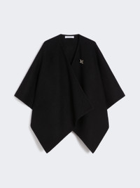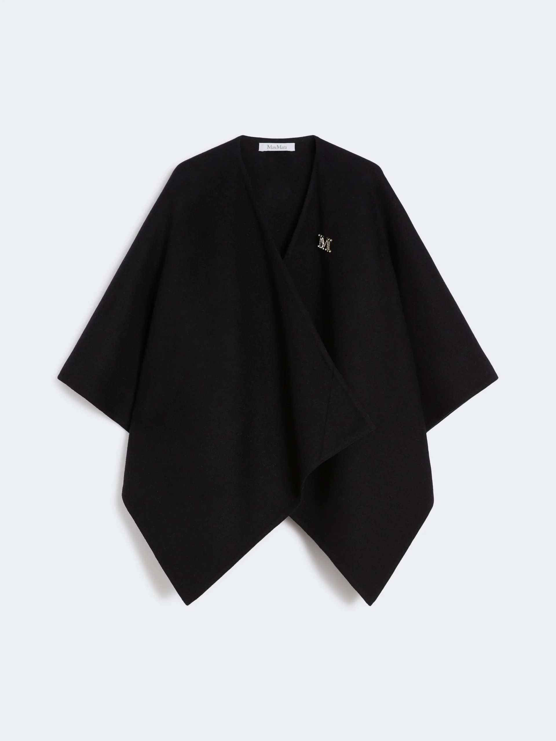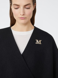 DETAILS Short cape with a rectangular design, to be worn closed with a brooch or open with a maxi lapel. Soft alpaca and wool cape Enveloping volumes M Monogram brooch with crystals Oversize Max Mara label in the corner COMPOSITION AND CARE 55% alpaca, 25% polyamide, 20% wool. Do not wash; do not bleach; do not tumble dry; cool iron; professionally dry clean hydrocarbons low moisture - mild process; do not wet clean.; remove the brooche before washing. Distributed by Max Mara S.r.l., registered office in Reggio Emilia (Italy), Via Giulia Maramotti 4, 42124 (IT)
