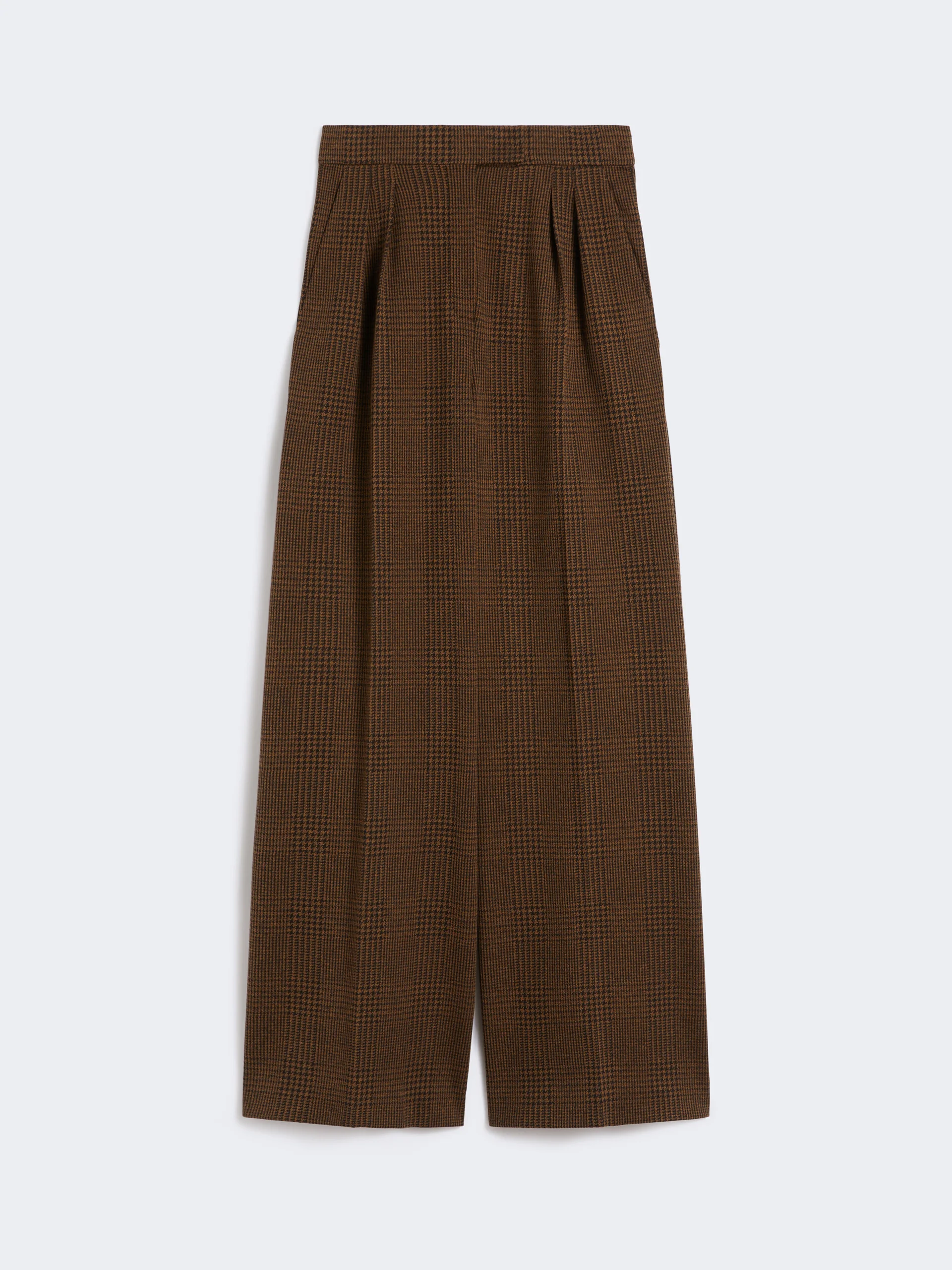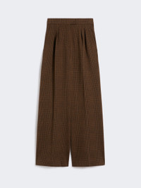 DETAILS Menswear-inspired trousers with wide legs. Prince of Wales cotton and wool jersey trousers Regular waist with double pleats on the front Fastening with a wide waistband tab, zip fly and small hook Slant pockets at the sides Trouser crease COMPOSITION AND CARE 53% cotton, 37% wool, 10% polyester. Do not wash; do not bleach; do not tumble dry; cool iron; professionally dry clean perchloroethylene - mild process; do not wet clean.; iron with a cloth between. Distributed by Max Mara S.r.l., registered office in Reggio Emilia (Italy), Via Giulia Maramotti 4, 42124 (IT)