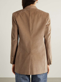 EDITORS'NOTES Max Mara's 'Potente' blazer is tailored from tonal panels of wool and cotton-corduroy for a textural contrast. It's designed with sharp peak lapels and traditional double-breasted button fastenings. It will layer effortlessly, thanks to its smooth lining. SIZE & FIT Model measurements: - Fits small to size, take one size larger than normal - Tailored for a slim fit - Mid-weight, non-stretchy fabric - Model is 177cm/ 5'10", normally wears a UK 8 and is wearing a UK 10 - Bust: 81cm/ 32" - Waist: 68cm/ 27" - Hip: 94cm/ 37" DETAILS & CARE - Camel cotton-corduroy and wool - Button fastenings through double-breasted front - Fabric1: 100% wool; fabric2: 100% cotton; lining: 65% acetate, 35% polyester - Dry clean Small to size. See Size & Fit notes.