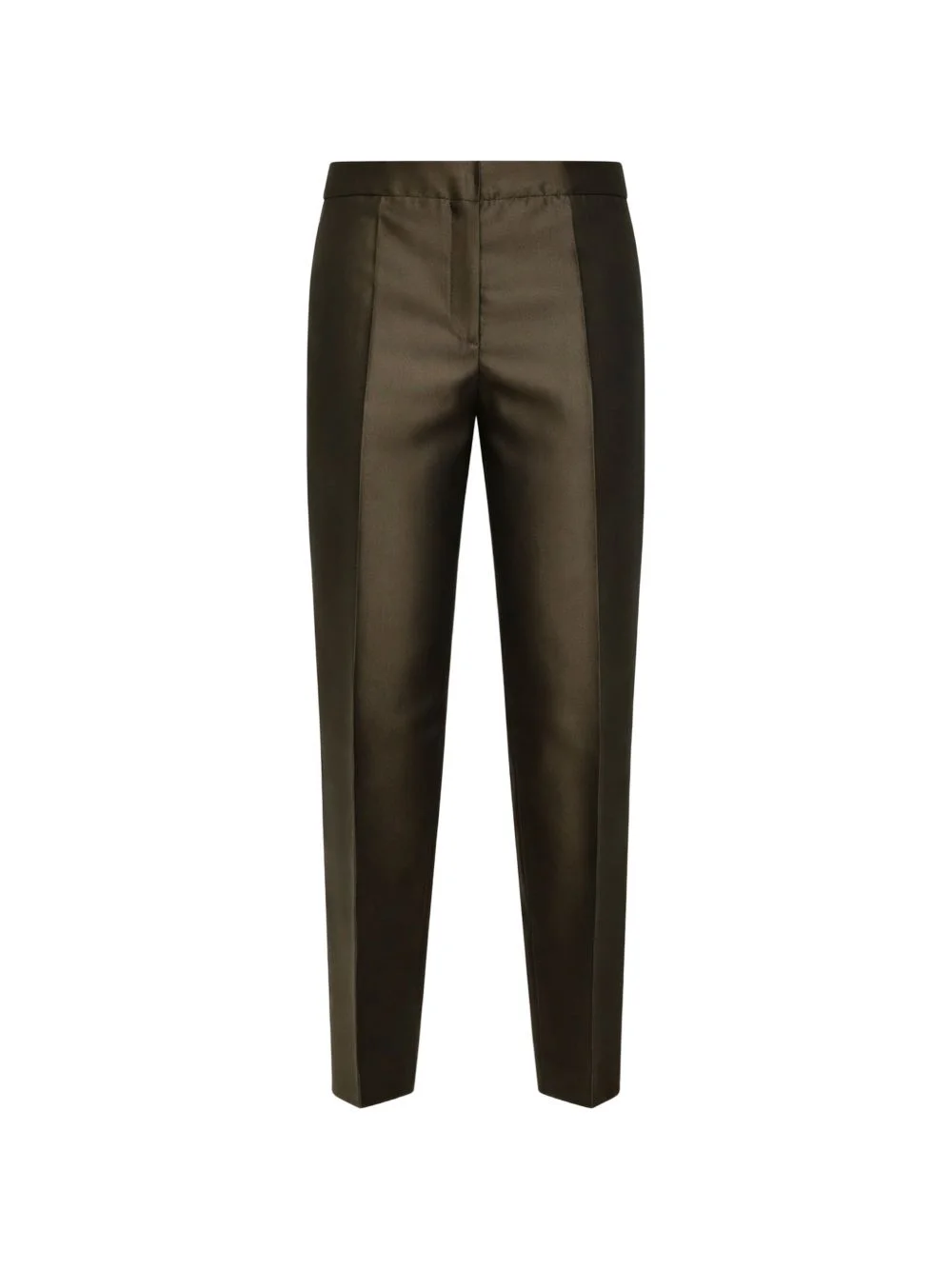 pressed carrot trousers Highlights - Green - Side slant pockets - Back darts - Pressed leg creases Imported Composition Cotton 72%, Silk 28%