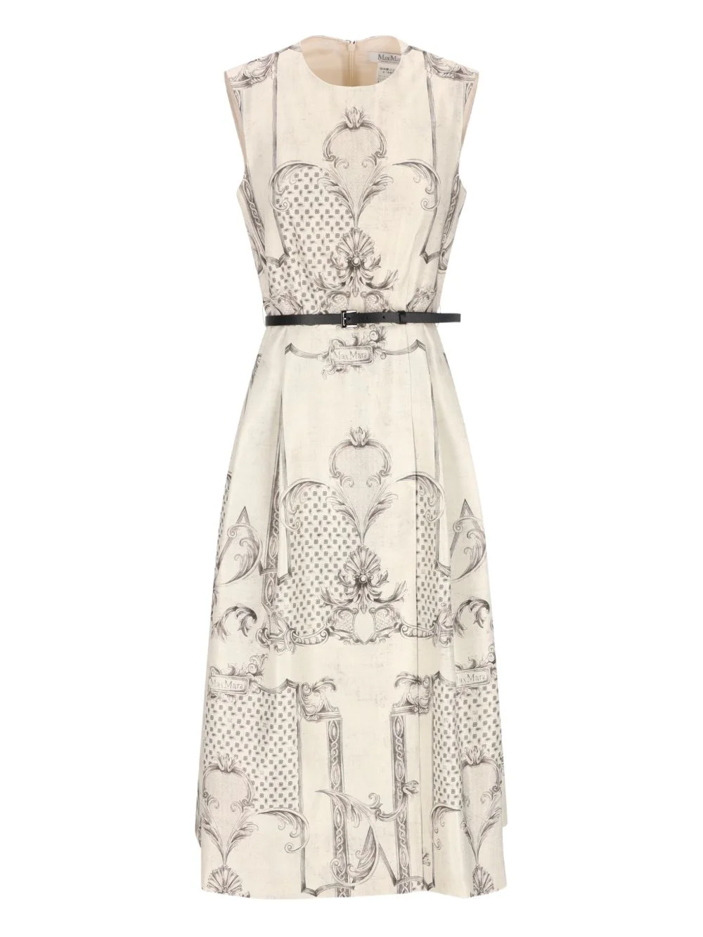 printed belted midi dress Highlights - Ivory white - All-over print - Belted waist - Sleeveless - Round neck - Midi length Made in Italy Composition Polyester 100% Washing instructions Read Manufacturer Guidelines