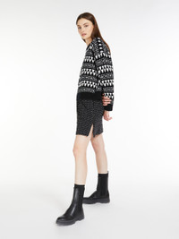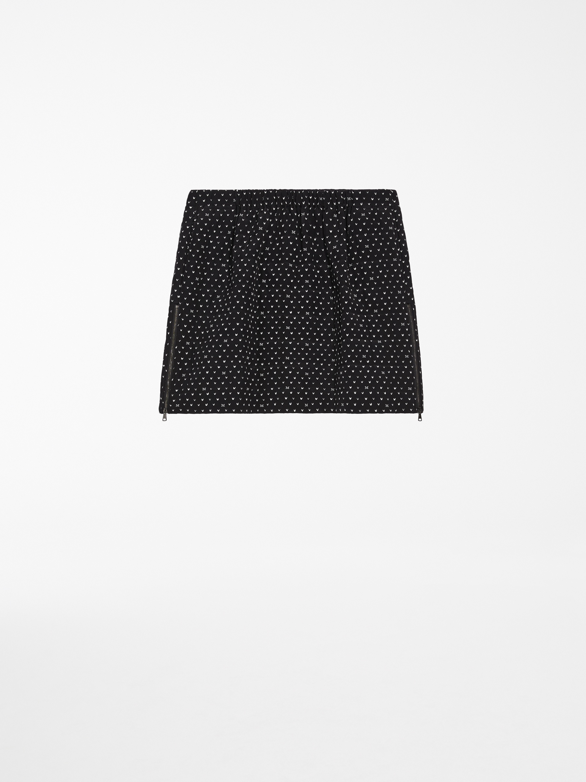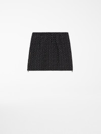 DETAILS Printed silk twill short skirt with folk-inspired quilted motif and elasticated waistband. Zipped side slits. Length: 45 cm. COMPOSITION AND CARE Fabric 100% silk; lining in 94% viscose, 6% elastane; with quilting in 100% polyester. Do not wash; do not bleach; do not tumble dry; cool iron; professionally dry clean perchloroethylene - mild process; do not wet clean.; wash the garment while it is fastened.; turn the articles inside out before washing. Distributed by Max Mara S.r.l., registered office in Reggio Emilia (Italy), Via Giulia Maramotti 4, 42124 (IT)