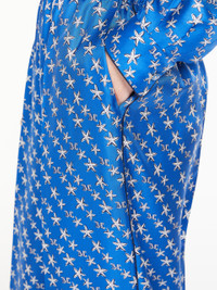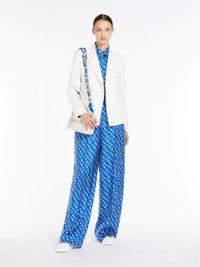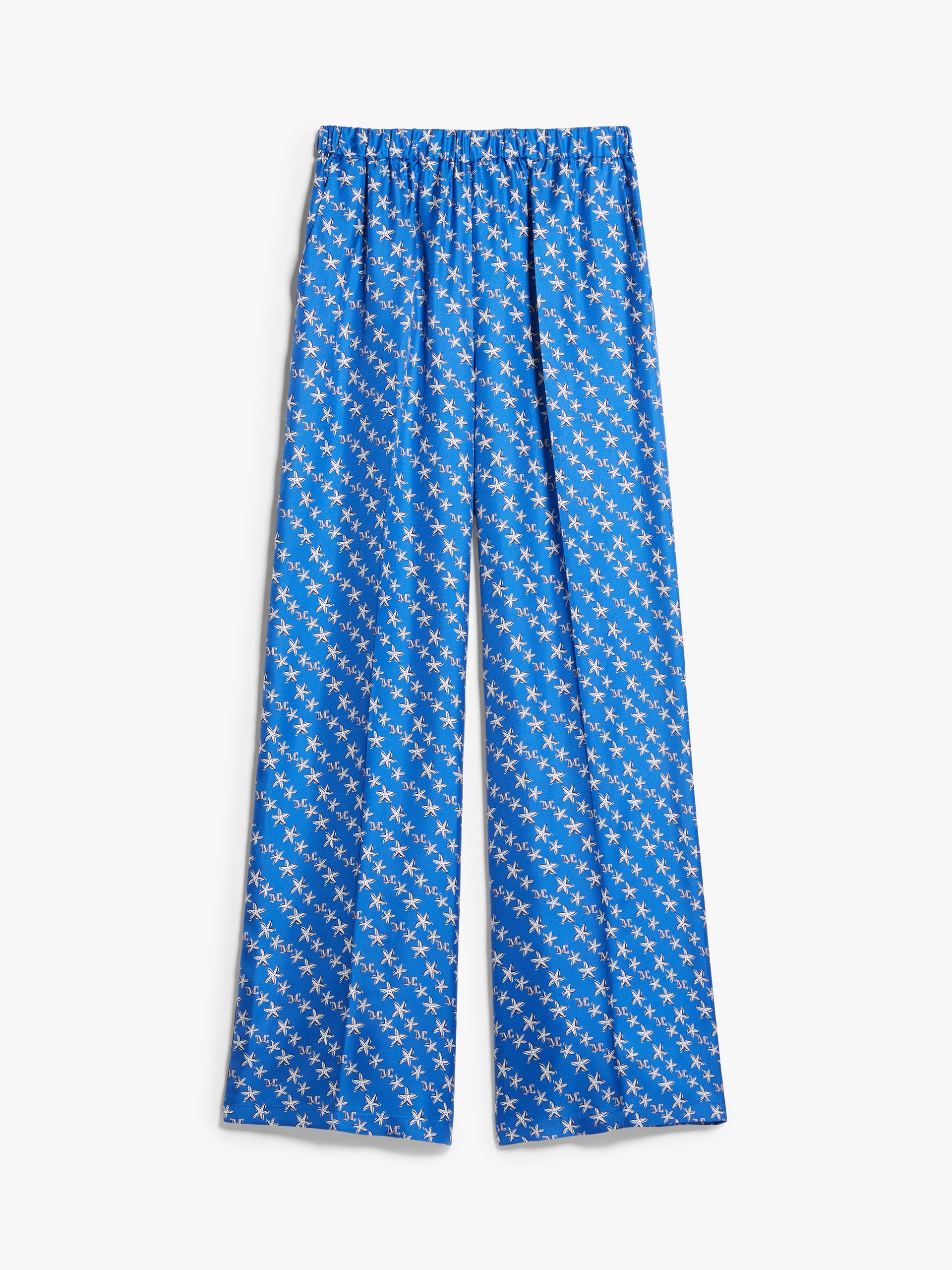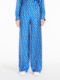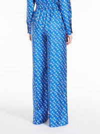 DETAILS Pure printed silk twill pyjama-style trousers, with elastic waistband and slanted side pockets. Flowing fit finished with a trouser crease down the leg and piping down the sides. COMPOSITION AND CARE Fabric 100% silk; - exclusive of decoration. Do not wash; do not bleach; do not tumble dry; cool iron; professionally dry clean perchloroethylene - mild process; do not wet clean. Distributed by Max Mara S.r.l., registered office in Reggio Emilia (Italy), Via Giulia Maramotti 4, 42124 (IT)