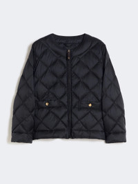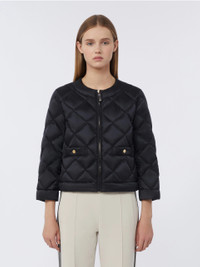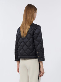 DETAILS Short crew-neck jacket padded with goose down, finished with elastic trim. - Water-repellent canvas jacket with diamond-patterned quilting - Three-quarter set-in sleeves - Side slit with logo snap buttons on the cuffs - Front zip fastening with a logo-branded leather pull-tab - Horizontal welt pockets with logo snap buttons COMPOSITION AND CARE Fabric 100% polyamide; lining 100% polyamide; with quilting virgin goose-down. Machine wash cold delicate cycle; do not bleach; do not tumble dry; line drying in the shade; cool iron; professionally dry clean perchloroethylene - mild process.; wash the garment while it is fastened.; don’t iron the labels.; turn the articles inside out before washing.; take off the zip tongue before washing.; contains non-textile parts of animal origin. Distributed by Max Mara S.r.l., registered office in Reggio Emilia (Italy), Via Giulia Maramotti 4, 42124 (IT) Collection: Max Mara The Cube Product code: 9481016406002 - MTCSOFTA