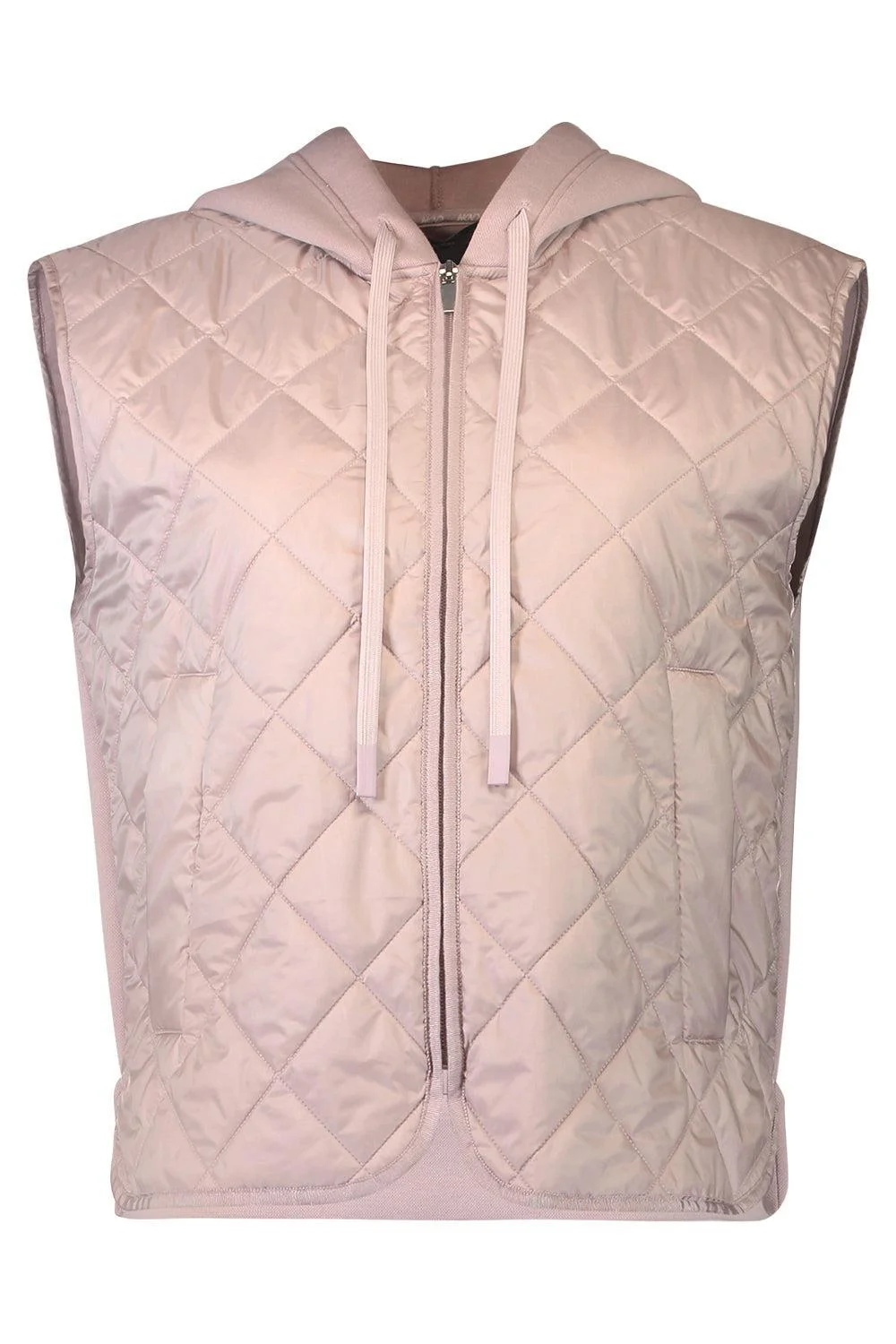 DETAILS AND INSIGHT Max Mara puffer vest in lilac. Jersey Fabric 67% Polyester, 27% Viscose, 06% Elastane Front 100% Polyester Fibre Padding 52% Wool Ovis Aries Aries, 48% Polyester Dry Clean Made In Cn Style 2615281016100-LILAC