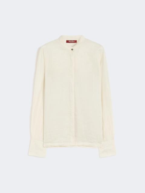 DETAILS Shirt featuring a minimalist design and loose-fitting kimono sleeves. - Ramie canvas shirt - Boxy fit - Mandarin collar - Long sleeves with wide cuffs and jewel cufflinks - Hidden front closure with visible top button - Matching camisole top COMPOSITION AND CARE Shirt 100% ramie. Top 100% cotton. Shirt: machine wash cold delicate cycle; do not bleach; do not tumble dry; line drying in the shade; cool iron; professionally dry clean perchloroethylene - mild process.; Wash the garment while it is fastened.; Do not iron the buttons.; Protect buttons before washing.; Turn the articles inside out before washing.; Contains non-textile parts of animal origin. Top: machine wash cold delicate cycle; do not bleach; do not tumble dry; line drying in the shade; cool iron; professionally dry clean perchloroethylene - mild process. Distributed by Max Mara S.r.l., registered office in Reggio Emilia (Italy), Via Giulia Maramotti 4, 42124 (IT) Collection: Studio Product code: 6261036206061 - MSTBALDI