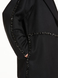 DETAILS Short, straight coat, made of luxurious, pure camel-hair drap double cloth and embellished with an embroidery of stones and jet applied on the garment with asymmetric edges. Lined in lightweight tone-on-tone taffeta and finished with a wide lapel collar and in-set pockets on the sides. Covered snap-button fastening. COMPOSITION AND CARE Fabric 100% camelwool; - except joining thread, exclusive of decoration; lining 100% viscose. Do not wash; do not bleach; do not tumble dry; cool iron; professionally dry clean perchloroethylene - mild process; do not wet clean.; do not iron the buttons.; do not iron the decoration.; protect buttons before washing.; turn the articles inside out before washing.; contains non-textile parts of animal origin. Distributed by Max Mara S.r.l., registered office in Reggio Emilia (Italy), Via Giulia Maramotti 4, 42124 (IT)