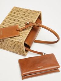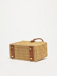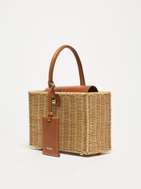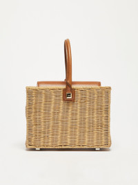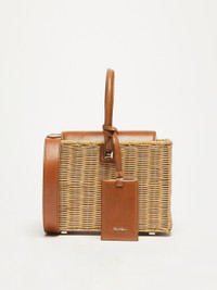 DETAILS Rectangular rattan basket, embellished with a soft, smooth leather handle and flap. The rigid, geometric design is complemented by a single handle and detachable shoulder strap for carrying by hand or on the shoulder. The interior is lined in suede effect fabric and has a removable zip pouch. Features a leather bottom, metal feet and removable leather nameplate holder with Max Mara lettering. Closure with magnetic flap. Measurements: 24 x 11 x 17 cm. COMPOSITION AND CARE Handbag in rattan; with details in cattle; lining in polyester. Distributed by Max Mara S.r.l., registered office in Reggio Emilia (Italy), Via Giulia Maramotti 4, 42124 (IT)