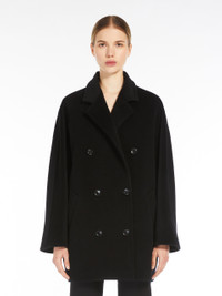 DETAILS The iconic 101801 coat is offered in a new short, above-knee cut. Wool and cashmere beaver cloth coat with tailored stitching Oversized fit Lapel collar Long turn-up kimono sleeves Double-breasted button fastening Welt side pockets Lined model COMPOSITION AND CARE Fabric 90% virgin wool, 10% cashmere; lining 100% viscose. Do not wash; do not bleach; do not tumble dry; cool iron; professionally dry clean perchloroethylene - mild process; do not wet clean.; do not iron the buttons.; protect buttons before washing.; contains non-textile parts of animal origin. Distributed by Max Mara S.r.l., registered office in Reggio Emilia (Italy), Via Giulia Maramotti 4, 42124 (IT)
