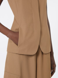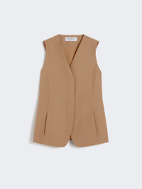 DETAILS Single-breasted hip-length gilet with side slits that accentuate the silhouette. Flowing, pure cotton twill gilet Semi-fitted V neck Concealed button fastening at the front Side inset pockets Lined COMPOSITION AND CARE Fabric 100% cotton; lining 100% cotton. Do not wash; do not bleach; do not tumble dry; cool iron; professionally dry clean perchloroethylene - mild process; do not wet clean.; do not iron the buttons.; protect buttons before washing.; contains non-textile parts of animal origin. Distributed by Max Mara S.r.l., registered office in Reggio Emilia (Italy), Via Giulia Maramotti 4, 42124 (IT)