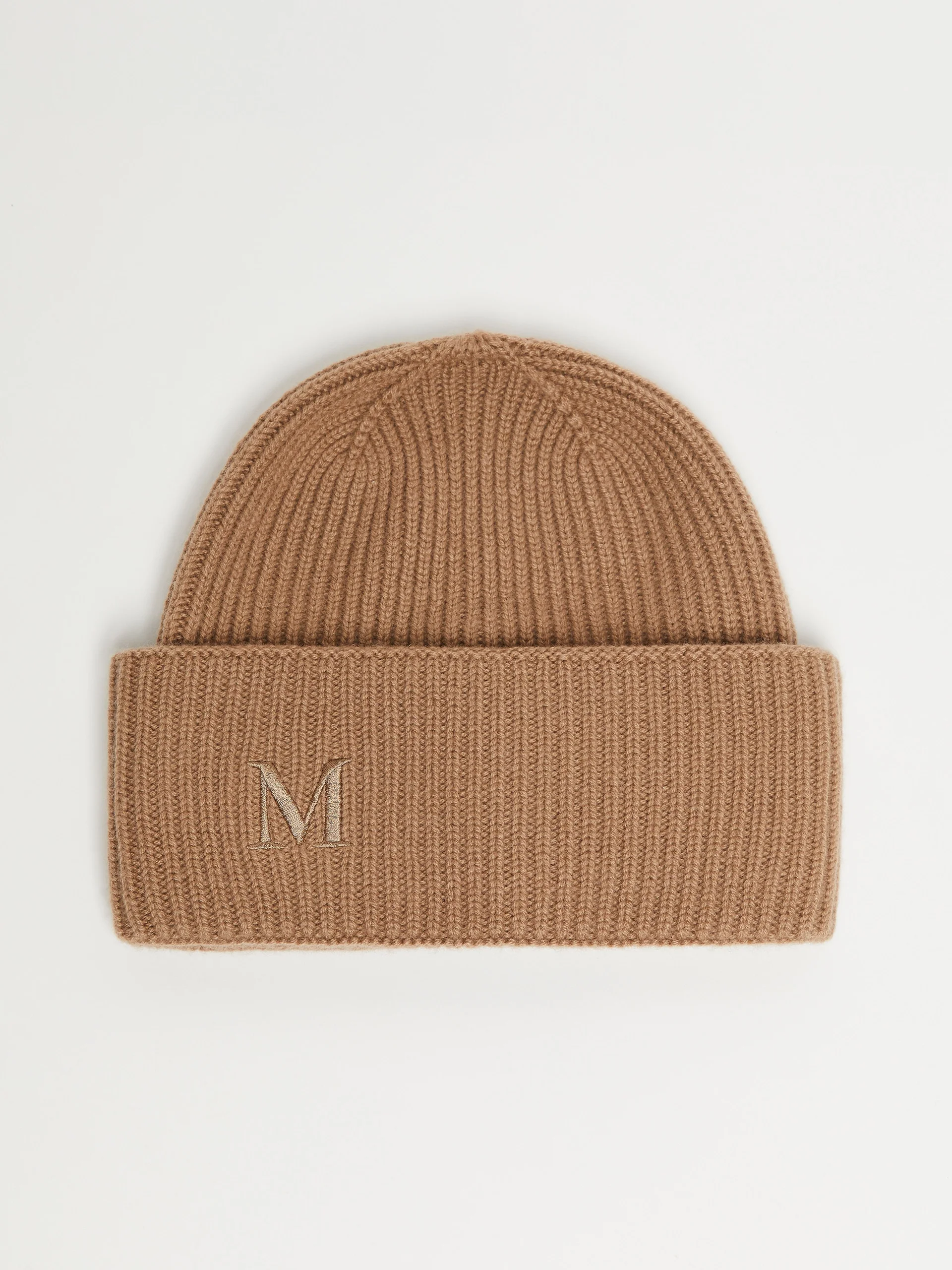 DETAILS Soft and warm fisherman's rib-knit beanie hat. Pure cashmere yarn beanie hat Turned-up cuff Embroidered M monogram logo detail COMPOSITION AND CARE 100% cashmere. Do not wash; do not bleach; do not tumble dry; cool iron; professionally dry clean perchloroethylene - mild process; do not wet clean. Distributed by Max Mara S.r.l., registered office in Reggio Emilia (Italy), Via Giulia Maramotti 4, 42124 (IT)