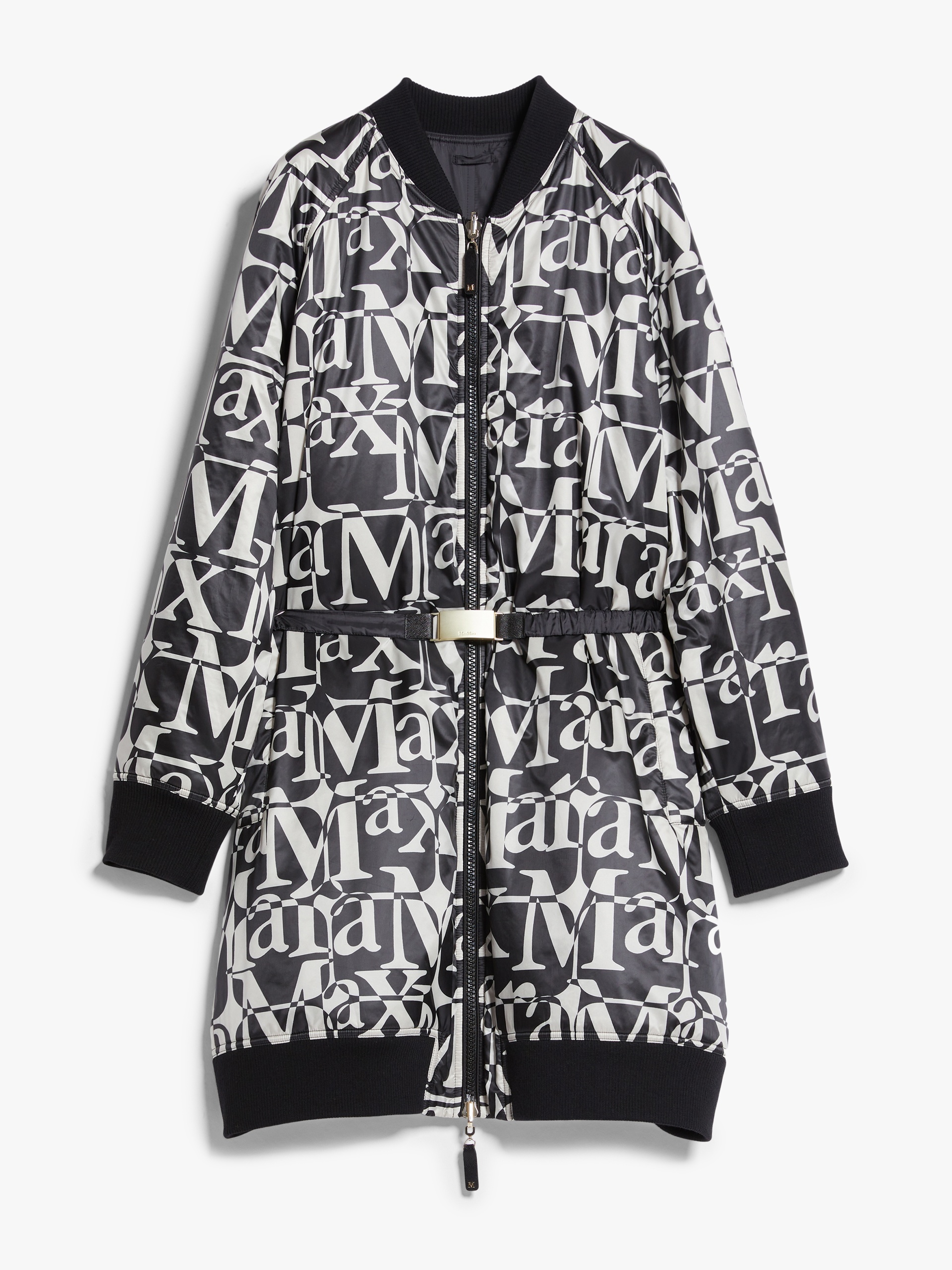 DETAILS Reversible long bomber jacket in water-repellent technical canvas featuring a rib-knit collar, cuffs and hem. Raglan sleeves and welt pockets. One side boasts printed canvas fabric, whilst the other side is plain-coloured. The Cameluxe padding sets the garment apart: a new frontier as far as upcycling processes are concerned, since any surplus material leftover from the process of cutting the pure camel fabrics for our legendary coats, is recovered. These pieces of fabric are then reused to create a special padding material that boasts the same insulating properties as virgin materials, without needing to use any more raw materials. Zip fastening and an elasticated fabric belt. COMPOSITION AND CARE Fabric 100% polyester; inner fabric 100% polyester; with quilting in 48% polyester, 48% camelwool, 4% silk; with knitted details 84% virgin wool, 15% nylon, 1% elastane; - exclusive of decoration. Do not wash; do not bleach; do not tumble dry; do not iron; professionally dry clean hydrocarbons low moisture - mild process; do not wet clean.; don’t iron the labels.; do not apply the iron soleplate on the garment fabric.; remove the belt before washing.; take off the zip tongue before washing.; contains non-textile parts of animal origin. Distributed by Max Mara S.r.l., registered office in Reggio Emilia (Italy), Via Giulia Maramotti 4, 42124 (IT)