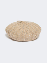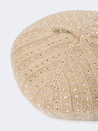 Rhinestone-adorned cashmere beret - SAND