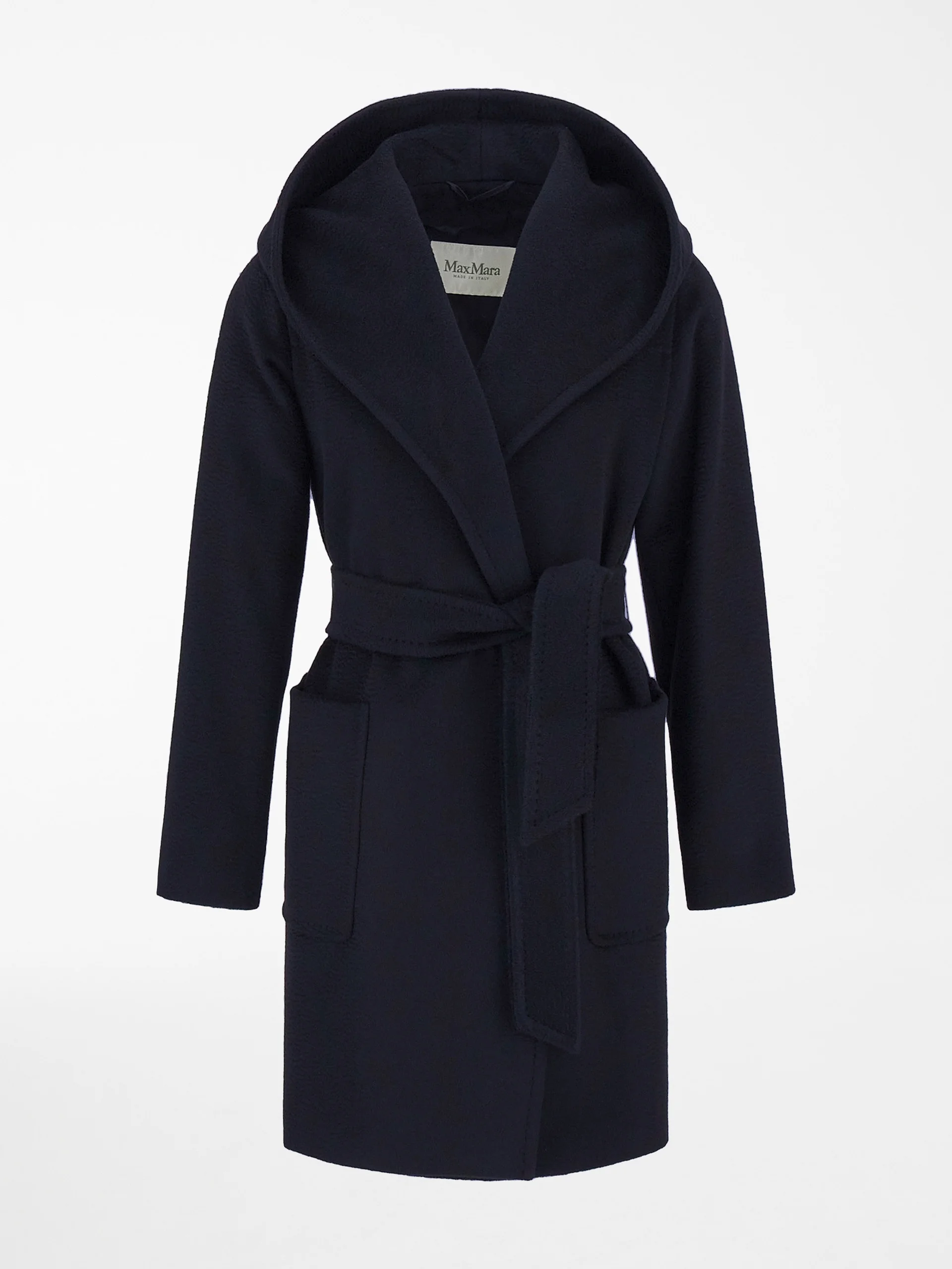 DETAILS Hooded robe coat with a wraparound fit. Coat in sable-look pure camel broadcloth Long set-in sleeves Matching belt Patch front pockets Embellished with tailoring-style hand-stitched detail Central rear slit Lined model COMPOSITION AND CARE Fabric 100% camelwool; lining 100% viscose. Do not wash; do not bleach; do not tumble dry; cool iron; professionally dry clean perchloroethylene - mild process; do not wet clean. Distributed by Max Mara S.r.l., registered office in Reggio Emilia (Italy), Via Giulia Maramotti 4, 42124 (IT)