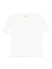 ribbed crew-neck T-shirt Highlights - White - Ribbed knit - Short sleeves - Crew neck - Debossed logo Made in Italy Composition Viscose 65%, Polyamide 35% SIZE & FIT Model measurements Height 5 ft 10 in(1.78 m) Bust/Chest 33.46 in(85 cm) Hips 36.22 in(92 cm) Waist 23.22 in(59 cm) Washing instructions Hand Wash