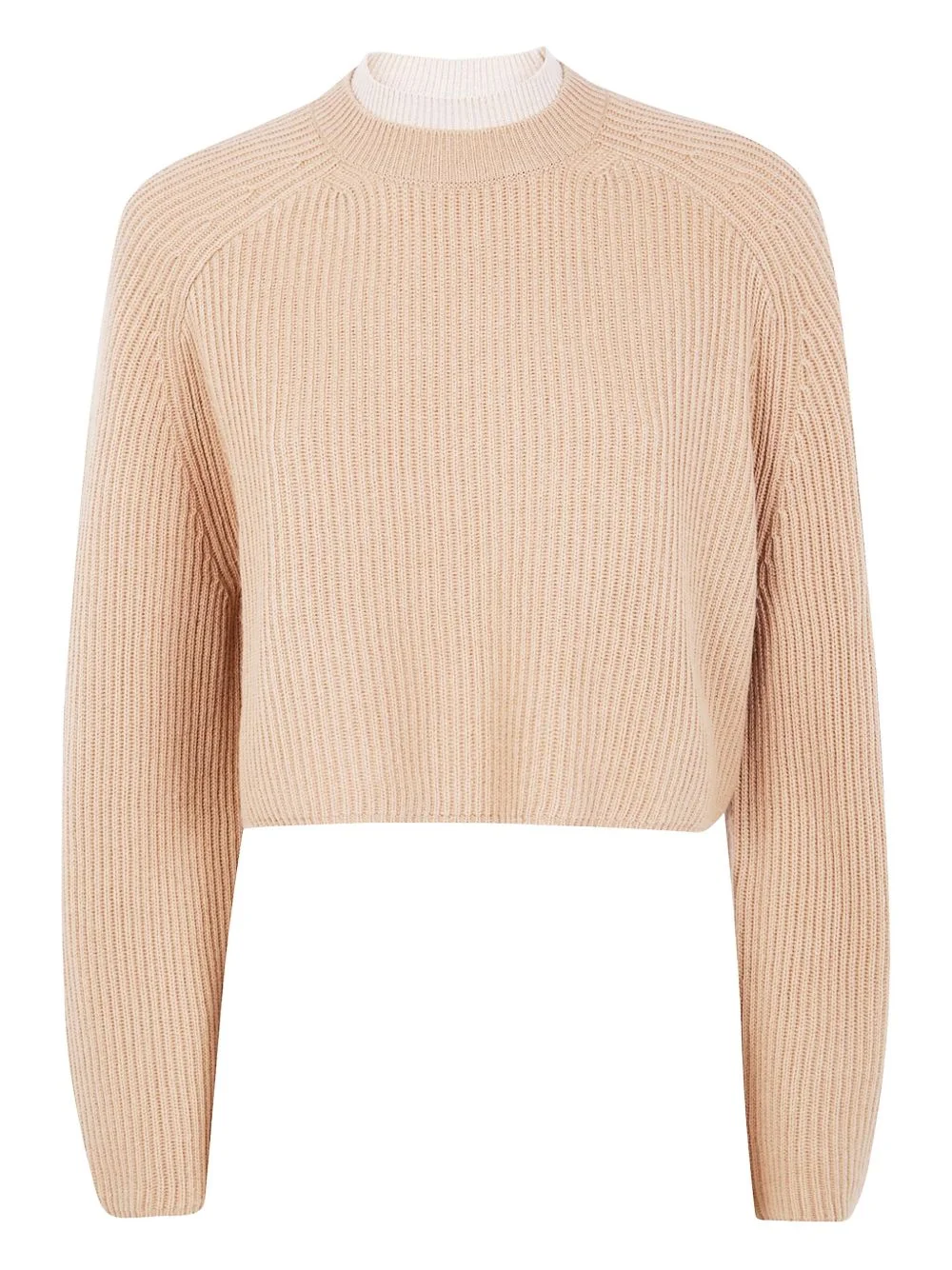 ribbed wool sweater Highlights - Camel - Ribbed knit - Raglan sleeves - High neck - Cropped length - Wool Imported Composition Wool 100%