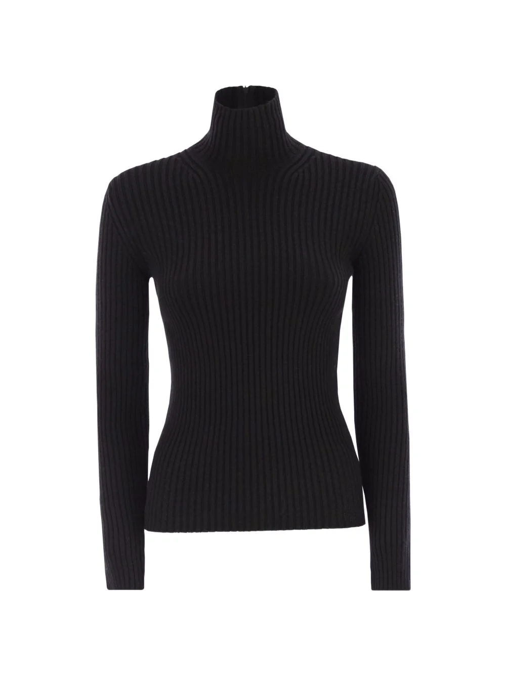 ribbed turtleneck jumper Highlights - Black - Ribbed knit - High neck - Long sleeves - Half zip - Enamelled slider Made in Italy Composition Wool 66%, Cashmere 28%, Polyamide 5%, Spandex/Elastane 1% Washing instructions Read Manufacturer Guidelines