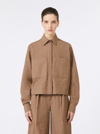 DETAILS Single-breasted boxy jacket slightly cropped to the waist. Pure wool canvas jacket with a crinkled effect Shirt collar Long sleeves with dropped shoulders and cuffs Concealed front fastening Patch pockets on the chest Yoke cut on the back Square side vents COMPOSITION AND CARE 100% virgin wool. Do not wash; do not bleach; do not tumble dry; do not iron; professionally dry clean perchloroethylene - mild process; do not wet clean.; wash the garment while it is fastened.; protect buttons before washing.; contains non-textile parts of animal origin. Distributed by Max Mara S.r.l., registered office in Reggio Emilia (Italy), Via Giulia Maramotti 4, 42124 (IT)