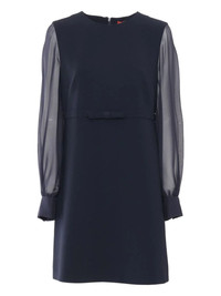 Ritmo dress Highlights - Navy blue - Concealed rear zip fastening - Buttoned cuffs - Long sheer sleeves - Buttoned cuffs Made in Italy Composition Triacetate 71%, Polyester 29% SIZE & FIT FittingInformation Designed for a slim fit that sits just away from the body offering a close yet comfortable fit Made from a midweight non-stretch fabric Washing instructions Read Manufacturer Guidelines