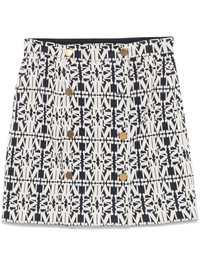 Rock mini skirt Highlights - Navy blue - Double-breasted button fastening - Patterned jacquard - Cotton lining Made in Italy Composition Outer: Cotton 100% Lining: Polyester 100%, Viscose 59%, Cotton 38%, Spandex/Elastane 3% SIZE & FIT Model measurements Height 5 ft 10 in(1.77 m) Bust/Chest 33.07 in(84 cm) Hips 37 in(94 cm) Waist 24.8 in(63 cm) FittingInformation This mini-length skirt is intended to be worn high on the waist Made from a midweight stretch fabric, this piece offers elasticity and flexibility when worn
