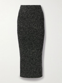 Max Mara’s ‘Rodano’ skirt strikes the perfect balance between polish and comfort. It's knitted from soft wool-blend with hints of cashmere and has a flecked melange finish. Complete the set with the matching 'Kim' cardigan. Size & Fit - Fits true to size, take your normal size - Midi-length, designed to be worn at the waist - Mid-weight knit - Model is 177cm/ 5'10" and is wearing a size X-Small Details & Care - Black and gray wool-blend - Pulls on - 68% wool, 29% cashmere, 2% polyamide, 1% elastane - Hand wash