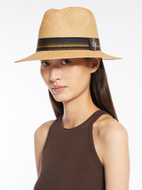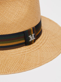 DETAILS Wide-brimmed Panama hat made entirely from straw. Embellished with a contrasting tie and small M Monogram applique detail at the knot. COMPOSITION AND CARE Style in straw; with details in 67% viscose, 33% polyester; swearband 64% cotton, 36% polyester. Do not wash; do not bleach; do not tumble dry; do not iron; do not dry clean; do not wet clean. Distributed by Max Mara S.r.l., registered office in Reggio Emilia (Italy), Via Giulia Maramotti 4, 42124 (IT)