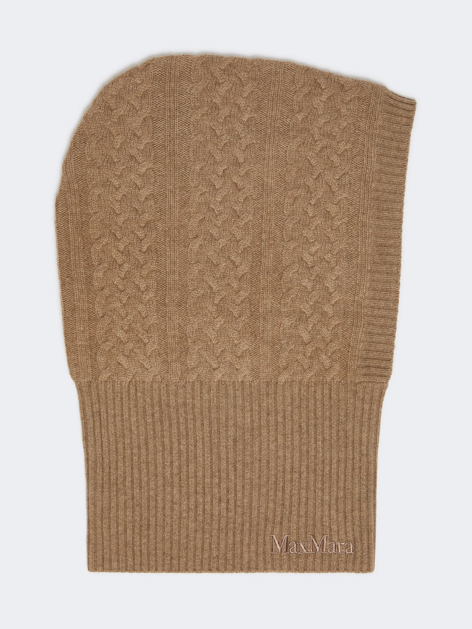 DETAILS Balaclava featuring a cable-knit pattern and rib-knit trims. Pure cashmere yarn balaclava Embroidered M Monogram logo on the lower side COMPOSITION AND CARE 100% cashmere. Do not wash; do not bleach; do not tumble dry; cool iron; professionally dry clean perchloroethylene - mild process; do not wet clean. Distributed by Max Mara S.r.l., registered office in Reggio Emilia (Italy), Via Giulia Maramotti 4, 42124 (IT)