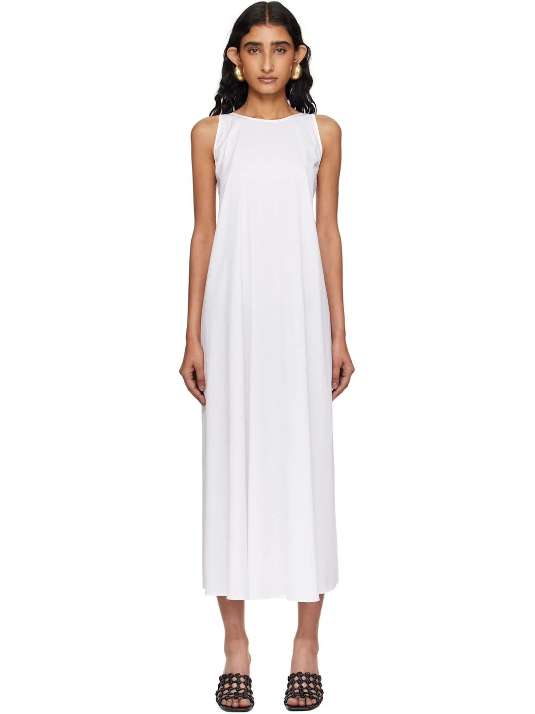 Stretch cotton-blend poplin midi dress. · Crewneck · Self-tie straps at elasticized low back Supplier color: Optical white 78% cotton, 20% polyamide, 2% elastane. Made in Turkey 251118F055011